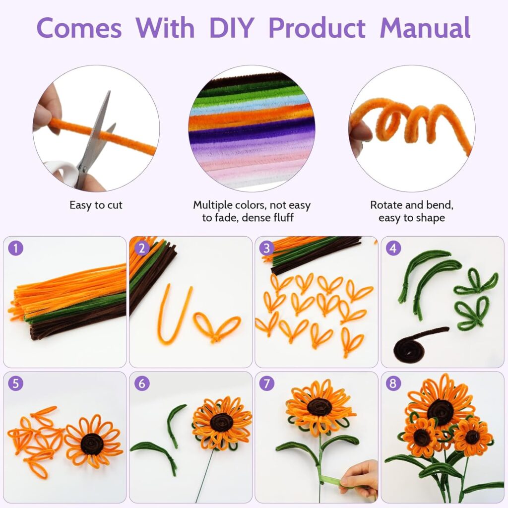 800 PCS Pipe Cleaner Flower Kit 13 Colors Chenille Stems with Instruction, Art and Craft Supplies